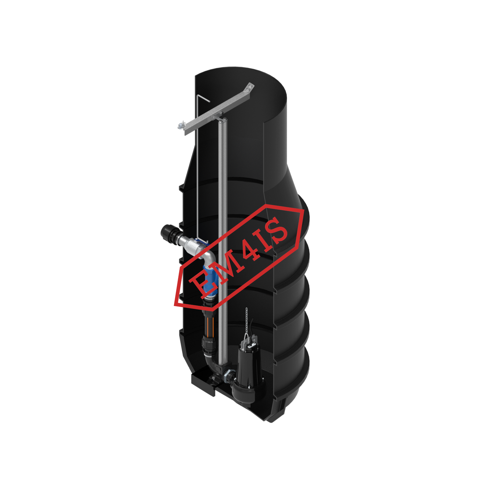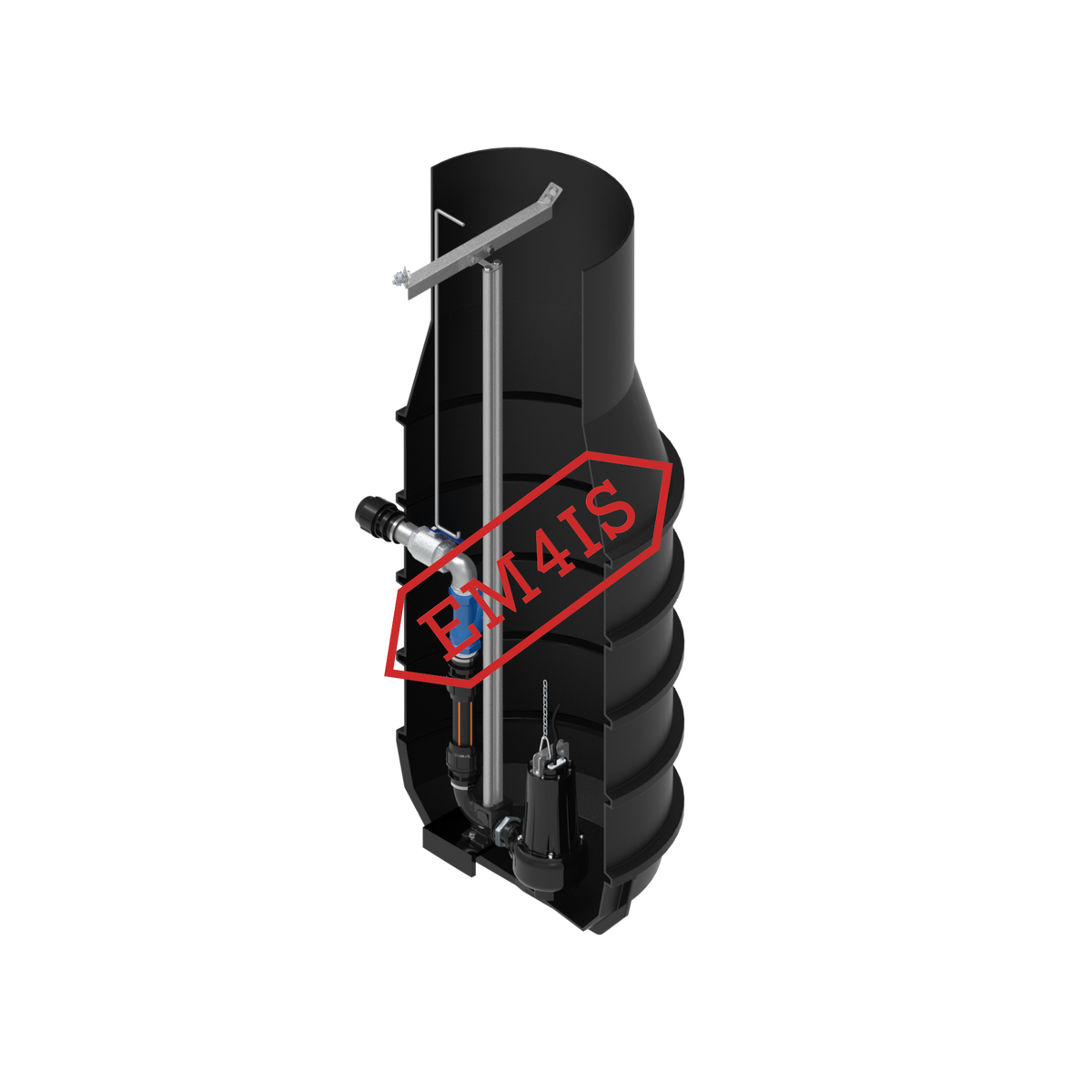 - W wersji B dla pompy: stopę sprzegającą z dwoma prowadnicami, zawór zwrotny kulowy, zawór odcinający, łańcuch nierdzewny.