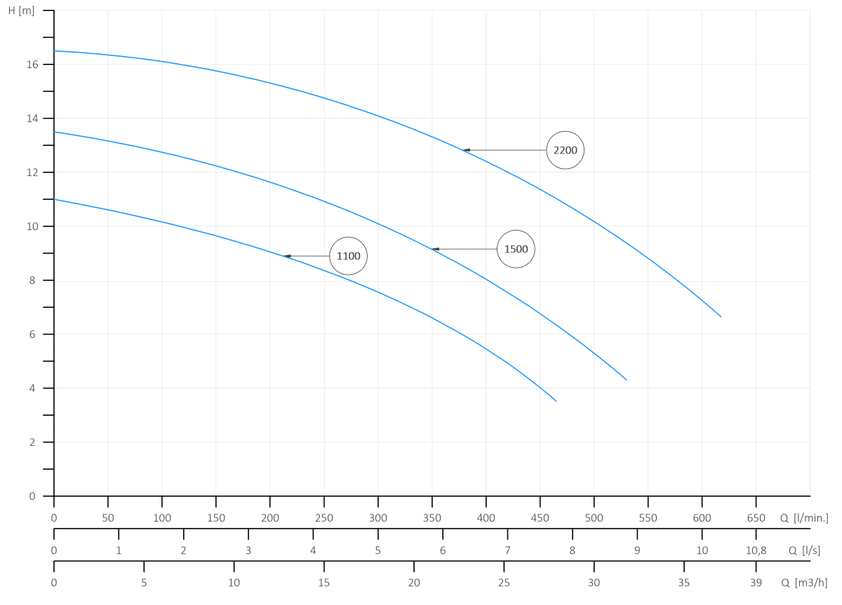 - Wydajność maksymalna Qmax = 10 l/s / 600 l/min / 36 m3/h,