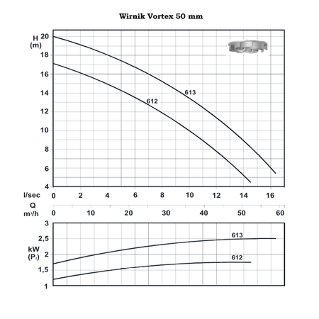 Pompy ściekowe ROTOMEC TL 613 mają dużą wydajność przy relatywnie niewielkiej mocy. Pompy te posiadają przy tym swobodny przelot pod wirnikiem 50 mm, zapewniający dużą wydajność i zabezpieczający przed zatkaniem zawartością fekaliów i szamba.