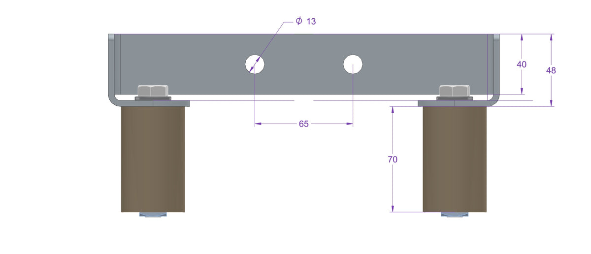 Wspornik prowadnic WP-H80, posiada rozstaw 200 mm dla typowych prowadnic rurowych Ø48,3x2 mm.